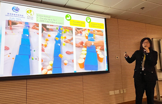 本處兒童復康服務一向積極與內地進行專業交流,與四川省八所幼稚園的園長於2025年1月初到灣仔摩理臣山兒童發展中心進行實地探訪,了解香港學前復康服務的發展及特色。探訪當日,服務總監陳嘉霖博士分享本港學前復康服務的發展里程及本處服務的指導原則與特色,不同的治療師更向嘉賓展示訓練方法。