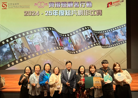 本處護程 ─ 護老者支援服務CarerPlus與護老者一同創作的《照顧風雲》,在社會福利署「齊撐照顧者行動 」2024-25年度短片創作比賽中獲大專及公開組優異獎。本片鼓勵照顧者尋找親友和社區資源協助,並呼籲社會大眾持續關懷身邊的照顧者。頒獎典禮由勞工及福利局局長孫玉菡先生,JP和社署署長李佩詩女士,JP主禮,共約400位嘉賓出席。